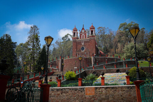 En el corazón de Metepec se encuentra el Cerro de los Magueyes, con la emblemática Capilla de la Virgen de los Dolores, una joya del siglo XVIII. Para llegar a este espacio religioso se deben subir unas escalinatas donde se puede admirar un mural del Árbol de la Vida, conformado por más de dos mil 600 placas de barro con la imagen de las artesanías que le dan identidad a este Pueblo Mágico.