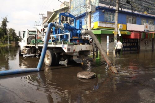 Coneme / El Gobierno de México, mediante la Comisión Nacional del Agua (Conagua), implementa un operativo emergente coordinado con las autoridades locales, para bombear el agua acumulada en diversas regiones del Estado de México y la Ciudad de México, con el cual ya se logró reducir casi por completo la anegación provocada por las lluvias, en apoyo de la población.