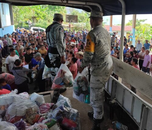 También, los efectivos de esta fuerza de seguridad pública y del ejército, colaboran en la distribución de víveres para las familias en las zonas afectadas.