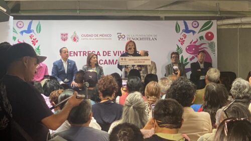 “Cada llave que hoy se entrega abre una puerta a un futuro con derechos; y cada vivienda que reciben ustedes va haciendo una grieta a ese muro de desigualdad que se tiene en la ciudad para hacer efectivo el derecho a la ciudad; y estos departamentos de los que hoy, bellísimos, ustedes son los dueños, son una promesa cumplida al derecho humano a la vivienda digna y adecuada, y este conjunto habitacional es un homenaje a las organizaciones sociales”, afirmó.