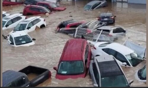 Y mientras tanto, los vehículos se pudren en patios, calles y estacionamientos, como en la imagen desgarradora que circula en redes sociales y medios, donde decenas de autos aparecen sepultados en agua lodosa, chocados unos contra otros, arrastrados por la corriente como si fueran juguetes rotos.