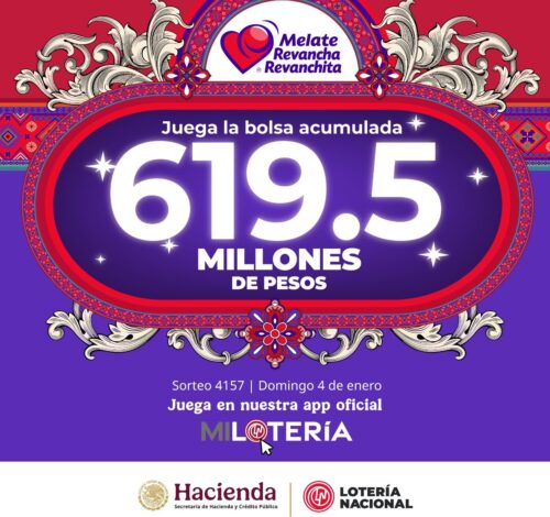 Coneme / Lotería Nacional invita a seguir participando por la bolsa acumulada del sorteo de Melate, Revancha y Revanchita que se ubica en 619.5 millones de pesos. Es tu oportunidad de jugar y comenzar el 2026 siendo un afortunado ganador.