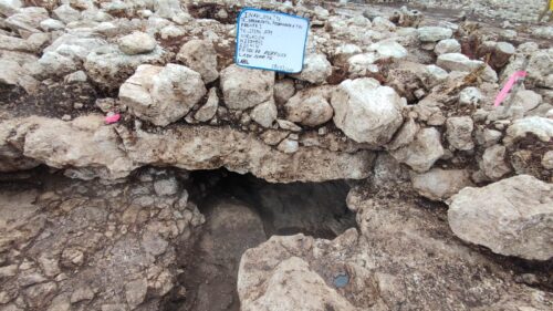 El segundo contexto se ubicó un metro más al oeste, con una amplia variedad de cerámica del periodo Preclásico Medio/Tardío (1000 a.C.-250 d.C.), restos óseos de venado y una cuenta circular de piedra caliza, lo que refuerza la teoría de que sus antiguos habitantes consagraron el espacio antes de su desplante arquitectónico.
