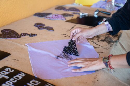 Así, para arrancar la jornada de actividades del encuentro, se llevó a cabo el taller creativo “Diseñando nuestra voz”, a cargo del Convite Cultural de Textil, que convocó a infancias y juventudes a plasmar en pañuelos morados algunos motivos alusivos al 8 de marzo mediante la técnica del linograbado.