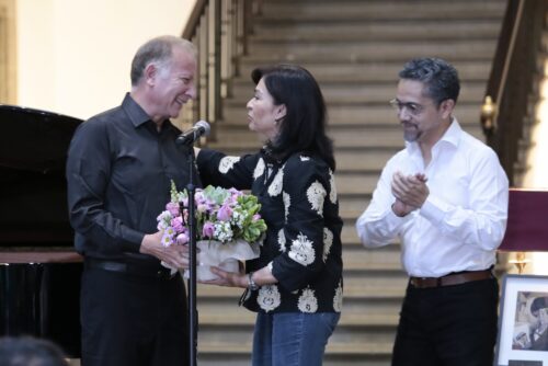 Coneme / El pianista Claudio Herrera celebró 50 años de trayectoria con el público que asiste todos los viernes por la noche a la Antigua Casona de Xicoténcatl, para disfrutar de los Conciertos de Bellas Artes en el Senado de la República. Se trata de un distinguido artista mexicano de nivel nacional e internacional, integrante del Grupo de Concertistas de Bellas Artes, con estudios en México, Francia, Italiana y Ucrania.