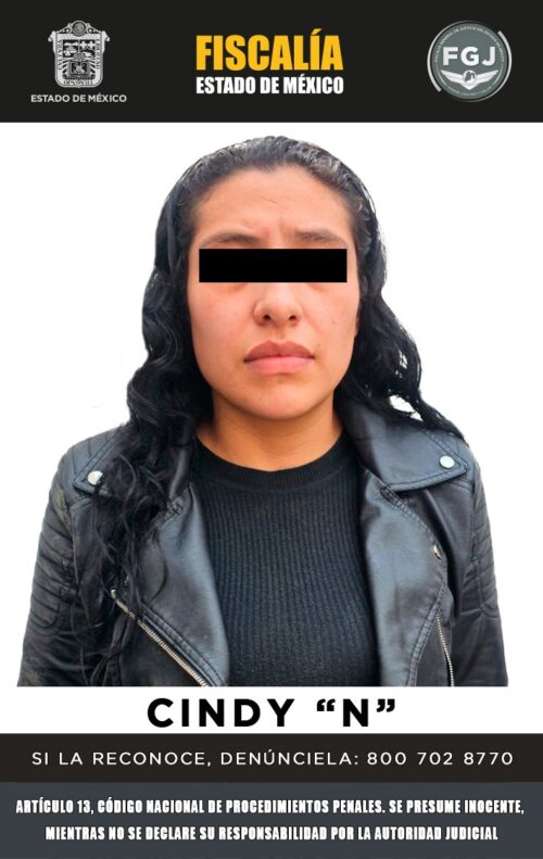 Después de tener conocimiento de estos hechos, la Fiscalía mexiquense inició la investigación que permitió identificar a Cindy “N”, por su probable participación en el delito de homicidio, por lo que solicitó y obtuvo de un juez la orden de aprehensión en su contra.