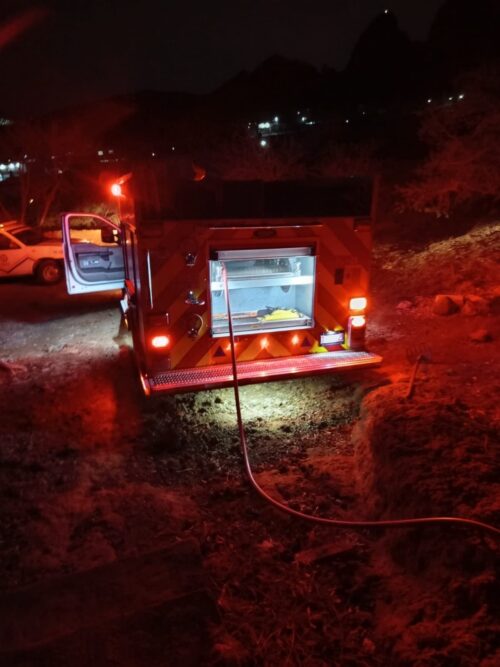 Personal operativo del ayuntamiento permanece en el área para realizar labores de vigilancia del rescoldo, a fin de prevenir cualquier reactivación, especialmente ante los fuertes vientos que se presentan en la zona.