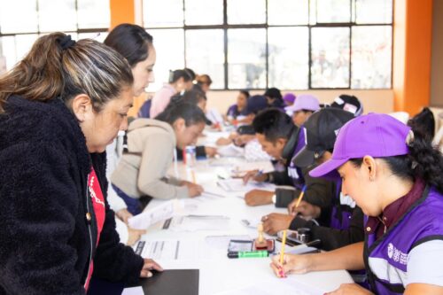 Coneme / La Ruta Violeta continúa su avance en la región Sierra, donde personal de la Secretaría de Bienestar realizó la recepción de documentos a mujeres interesadas en acceder a la Tarjeta Violeta 2026.